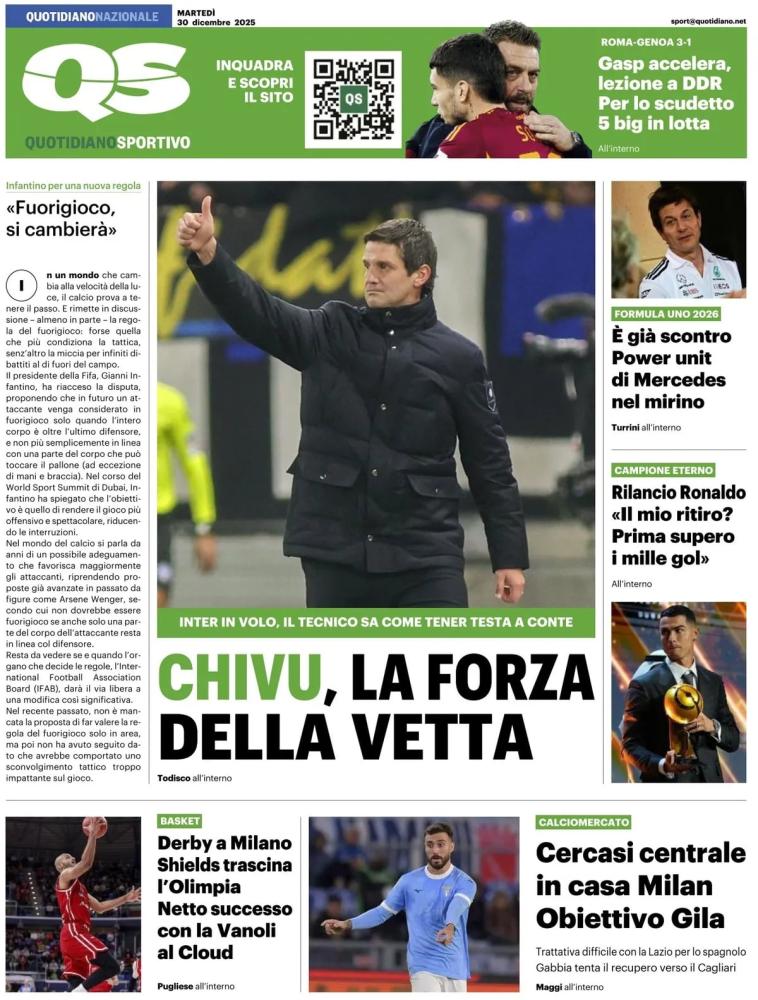 - 06:45 PRIMA PAGINA - QS Quotidiano Sportivo: "Chivu, la forza della vetta"