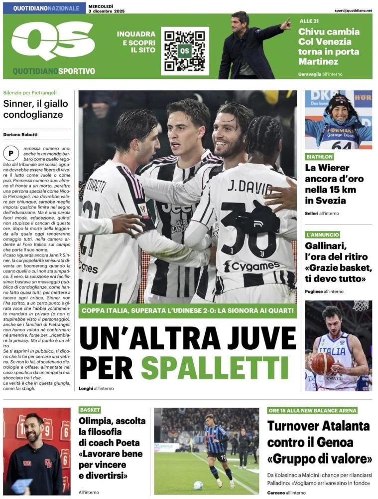 Apertura dedicata ai bianconeri con il titolo: "UN'ALTRA JUVE PER SPALLETTI". Superata l'Udinese 2-0, la "Signora" vola ai quarti di finale mostrando solidità e alternative valide.