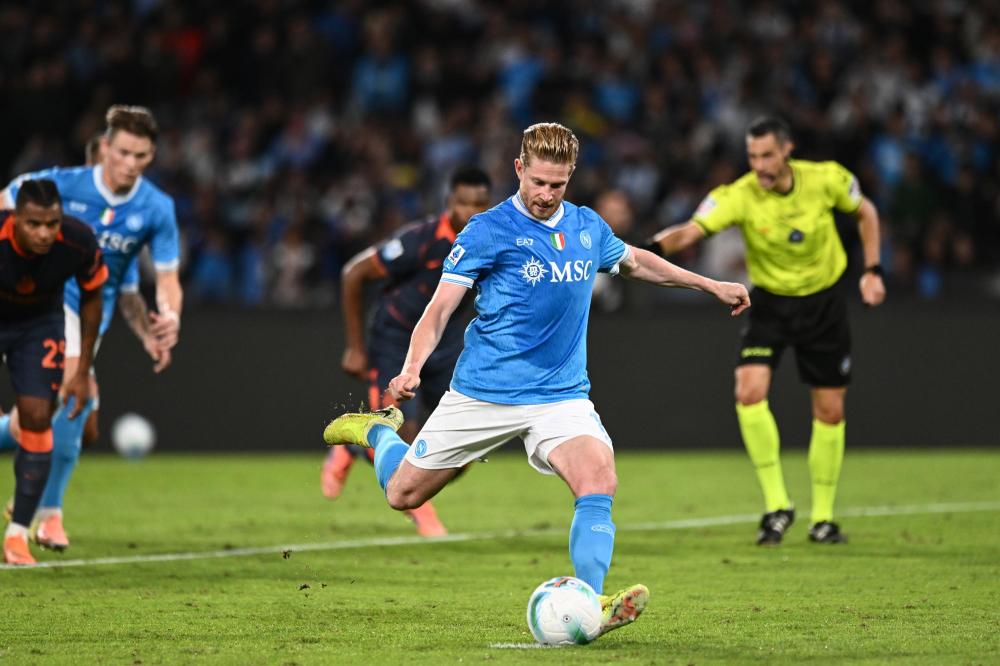 UN RIGORE DISCUTIBILE, MA DECISIVO – La gara si accende nel primo tempo su un episodio destinato a far discutere. L’arbitro Mariani assegna un rigore ai padroni di casa per un contatto tra Di Lorenzo e Mkhitaryan, giudicato falloso dopo un consulto con l’assistente. Decisione dubbia, definita da molti un “rigorino”, ma che cambia l’inerzia del match. Dal dischetto Kevin De Bruyne è implacabile: piazzato secco e Napoli avanti. Subito dopo, però, il belga deve lasciare il campo per un problema muscolare, lasciando l’ombra di un nuovo infortunio.